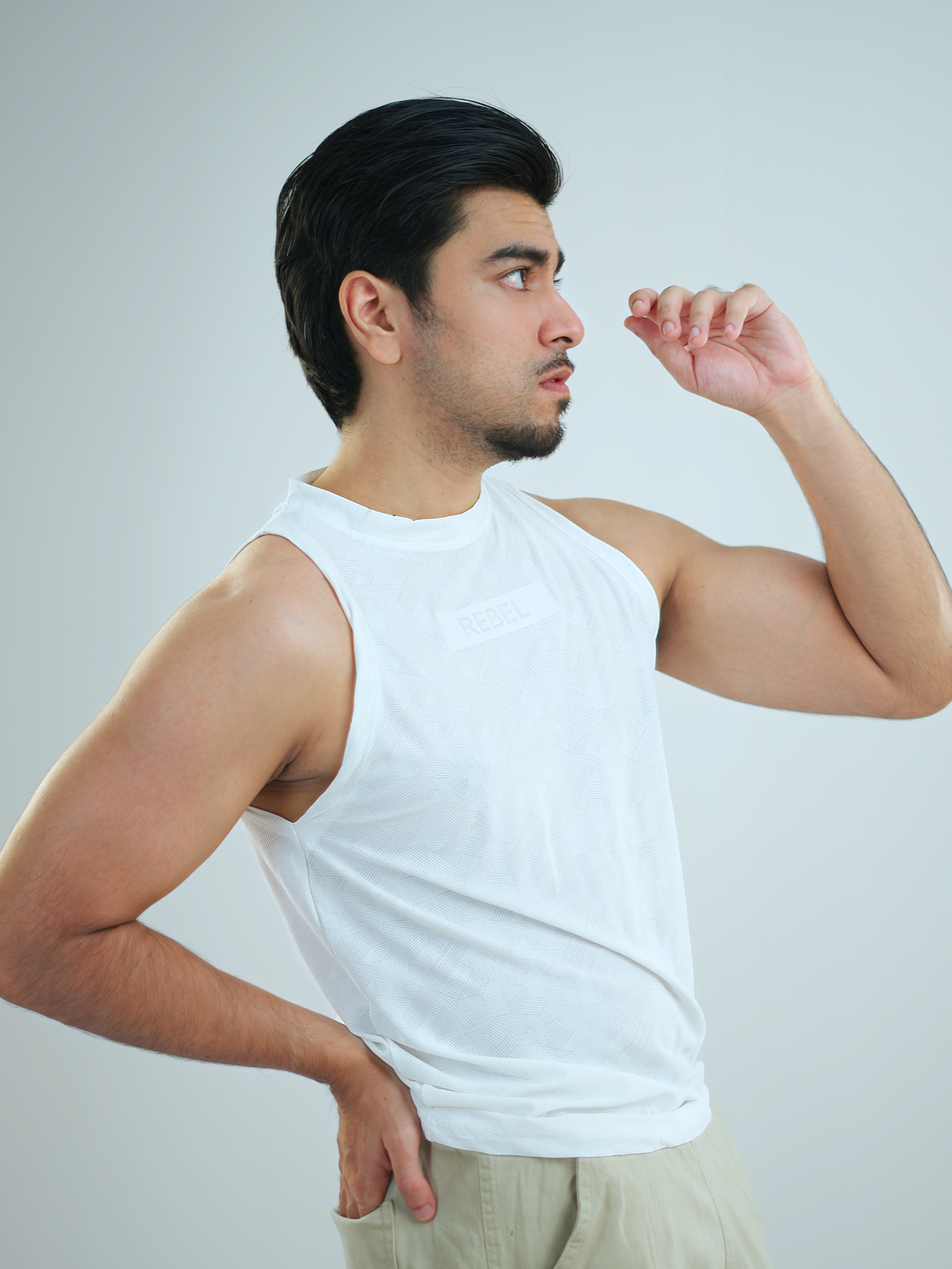 Crafted from 160 gsm jacquard knit polyester, this tank brings you the softest feel with a cool geometric texture—comfort and style that work as hard as you do.